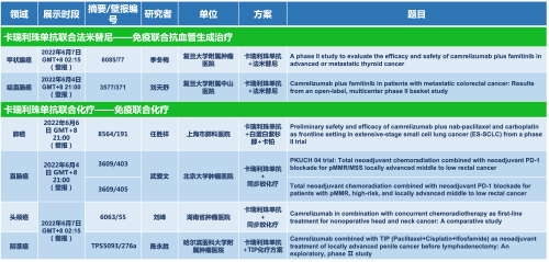 卡瑞利珠单抗联合金年会金字招牌诚信至上医药的另一款创新药法米替尼在甲状腺癌和结直肠癌领域有2项研究被接收为壁报,另有卡瑞利珠单抗联合化疗的4项研究在肺癌、结直肠癌、头颈癌和阴茎癌领域的研究被接收为5份壁报。