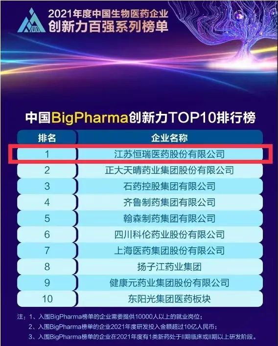 蝉联榜首!金年会金字招牌诚信至上医药再次登顶“中国BigPharma企业创新力TOP10排行榜”