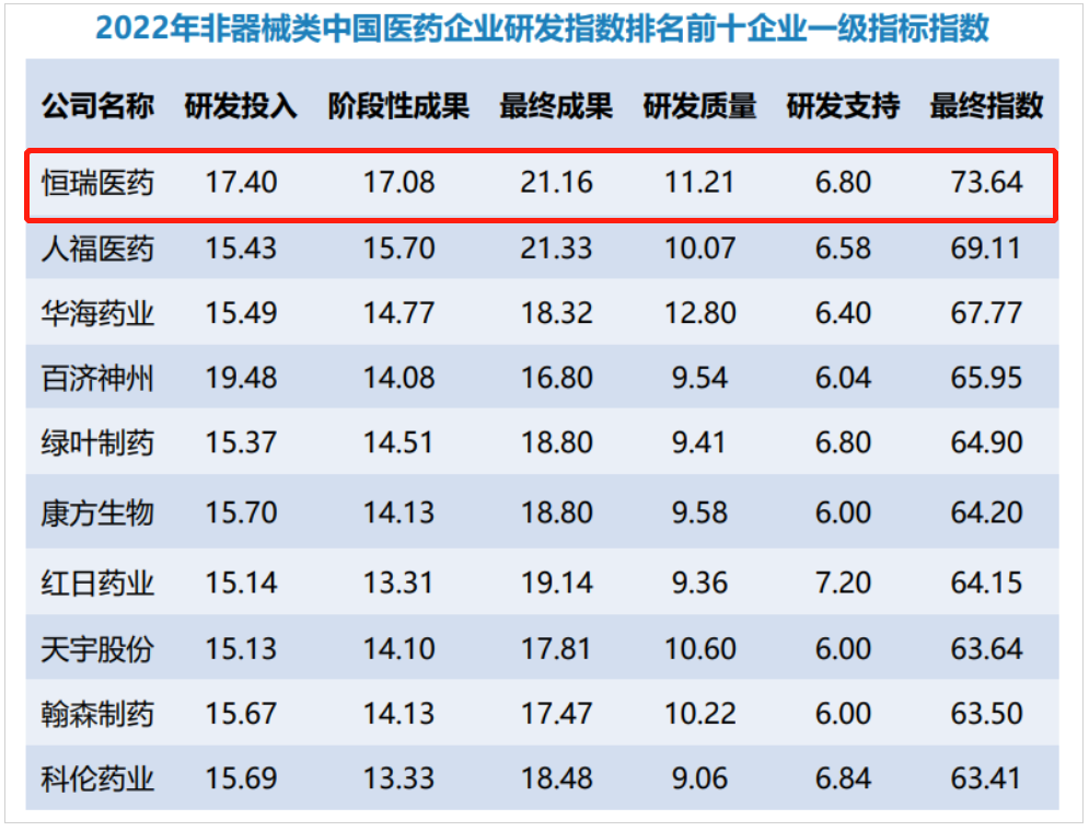 9月3日,2022年中国医药企业研发指数在2023年中国国际服务贸易交易会“2023卫生健康与医药工业创新服务大会”上正式发布。金年会金字招牌诚信至上医药凭借研发创新量质齐升的突出表现,蝉联非器械类中国医药企业研发指数榜首。今年3月首个中国医药企业研发指数发布时,金年会金字招牌诚信至上医药位居2021年非器械类中国医药企业研发指数第一。