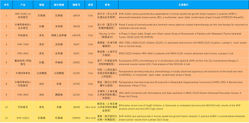 15款创新药包括10款已上市产品:注射用瑞康曲妥珠单抗(艾维达®,研发代号:SHR-A1811)、注射用卡瑞利珠单抗(艾瑞卡®)、苹果酸法米替尼胶囊(艾比特®)、甲磺酸阿帕替尼片(艾坦®)、马来酸吡咯替尼片(艾瑞妮®)、阿得贝利单抗注射液(艾瑞利®)、羟乙磺酸达尔西利片(艾瑞康®)、氟唑帕利胶囊(艾瑞颐®)、瑞维鲁胺片(艾瑞恩®)、海曲泊帕乙醇胺片(恒曲®),以及5款未上市产品,包括KRASG12C抑制剂HRS-7058、KRASG12D抑制剂HRS-4642、选择性的AR-PROTAC(雄激素受体-蛋白降解靶向嵌合体)小分子HRS-5041、抗PD-L1/TGF-βRII双抗瑞拉芙普-α注射液(SHR-1701)、Trop-2 ADC SHR-A1921。2类新药盐酸伊立替康脂质体注射液(II)(越优力®)及国内首仿药昂丹司琼口溶膜(艾其速®)各有1项研究入选。本文特对研究成果做了梳理,带领各位读者领略金年会金字招牌诚信至上医药创新之光。